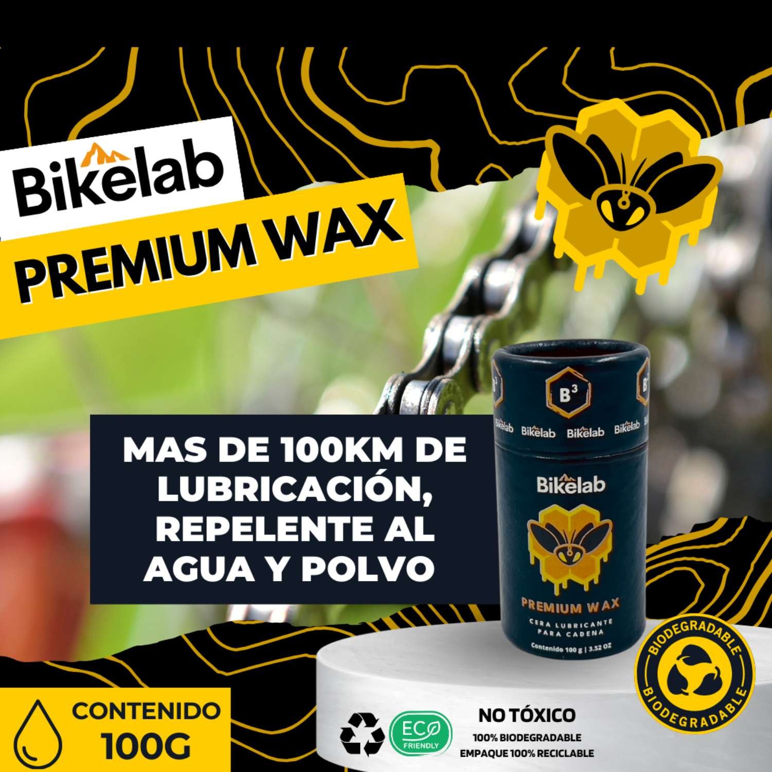 La cera para cadena de Bikelab ofrece una forma única y avanzada de lubricar tu cadena, proporcionando más de 100 km de lubricación efectiva.